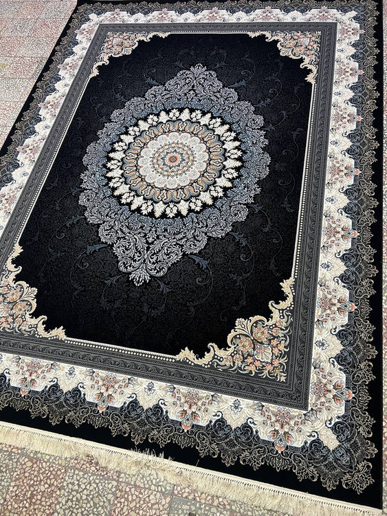 فرش۹متری ضخیم و سنگین نقش گلاریس سرمه ای