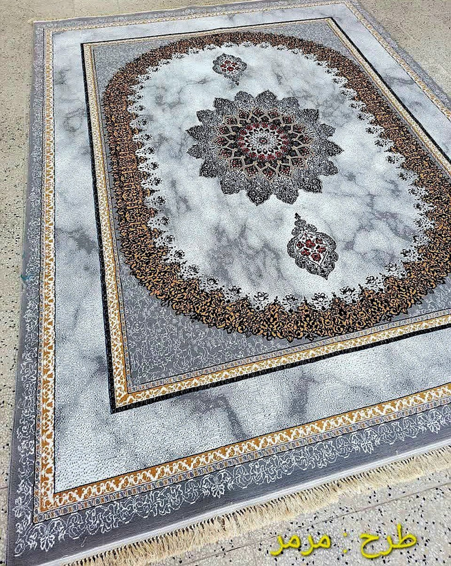 فرش طرح مرمر طوسی 700شانه 9متری فرش کاشان .