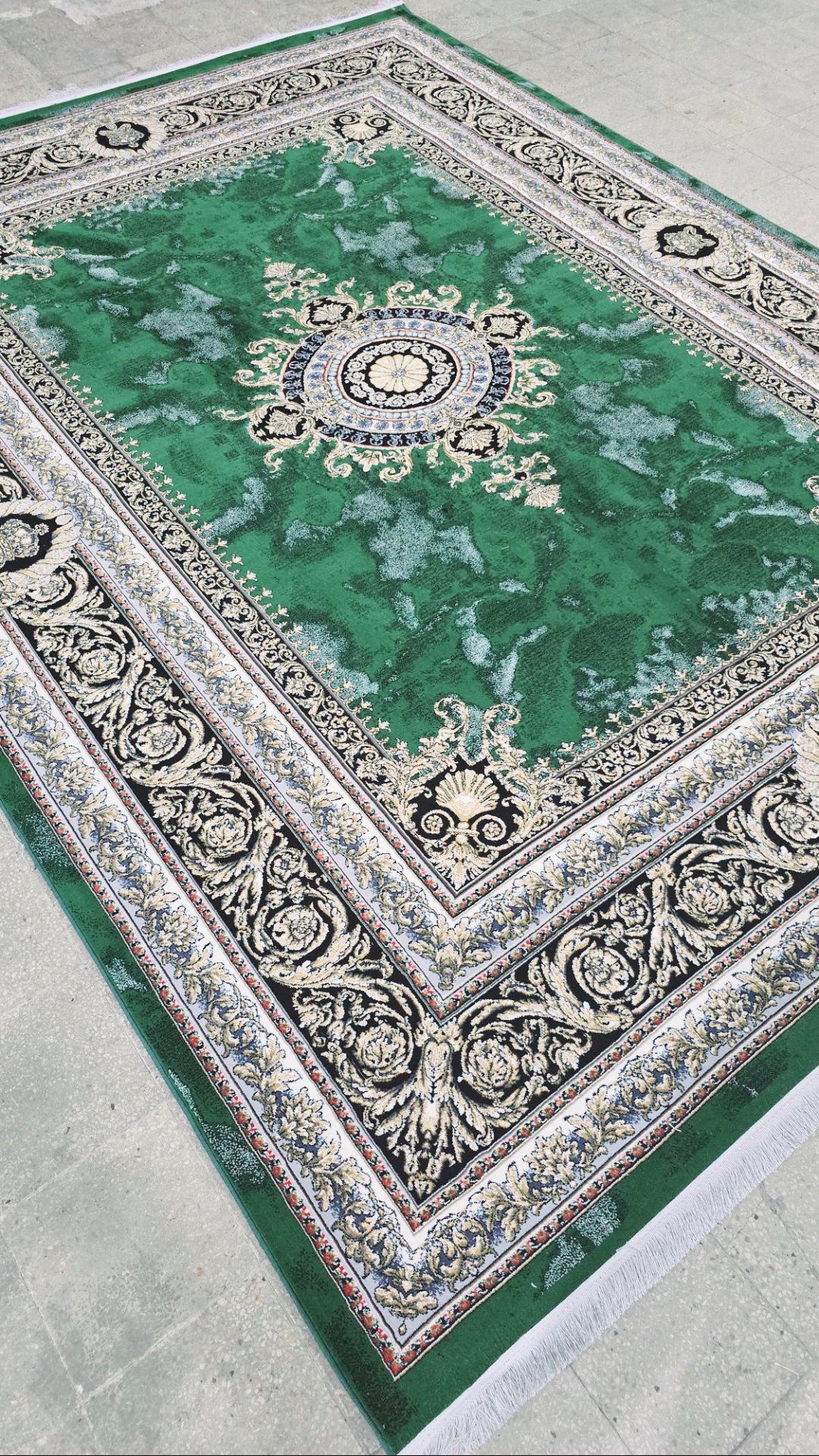 فرش حراجی زمینه سبز 700شانه 2550 تراکم سنگین 9 متری
